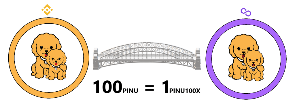 Depositing 100 PINU on the BSC chain will result in 1 PINU100X being sent to the same address on the Polygon chain.